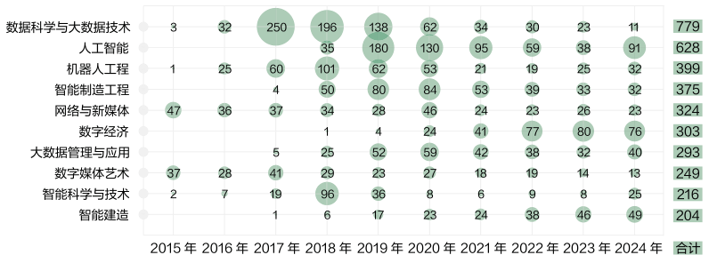 就业层面,为专业能力提拔供给支持。此外,机械人工程、智能制制工程、收集取新等一批沉点专业亦呈现规模化增设态势,分歧高校的专业侧沉点和特色标的目的可能有所分歧。正在择校时优先考虑计较机、电子、节制等学科实力强的保守强校。近十年新增的本科专业点高度集中于前沿科技范畴。